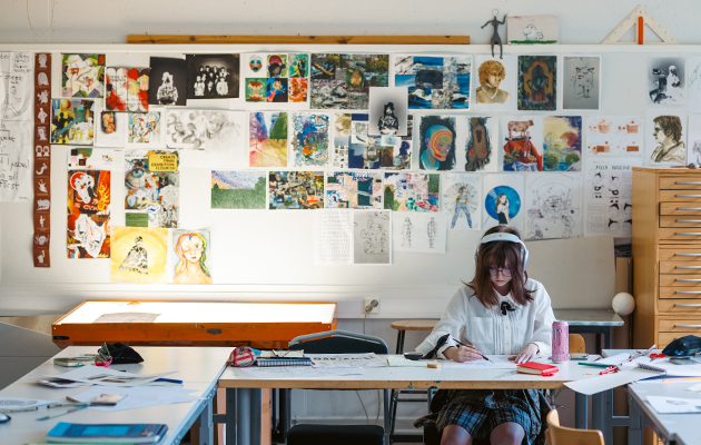 ”Lärarna arbetar själv med konst och man kan vara väldigt öppen om allt med dom. Vi trivs!”